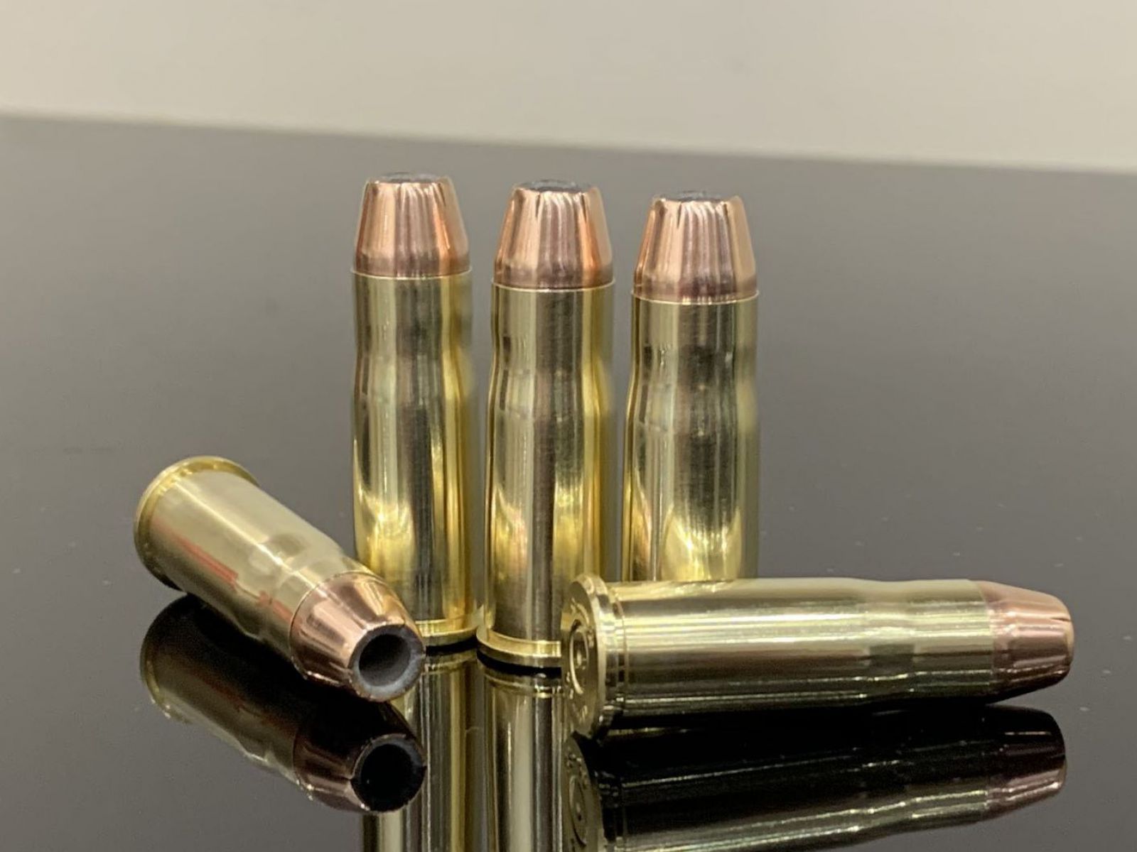 Пуля отличается от оригинального калибра .44-40 всего на 0,026 дюйма в диаметре и на 20 гран (1,3 г).