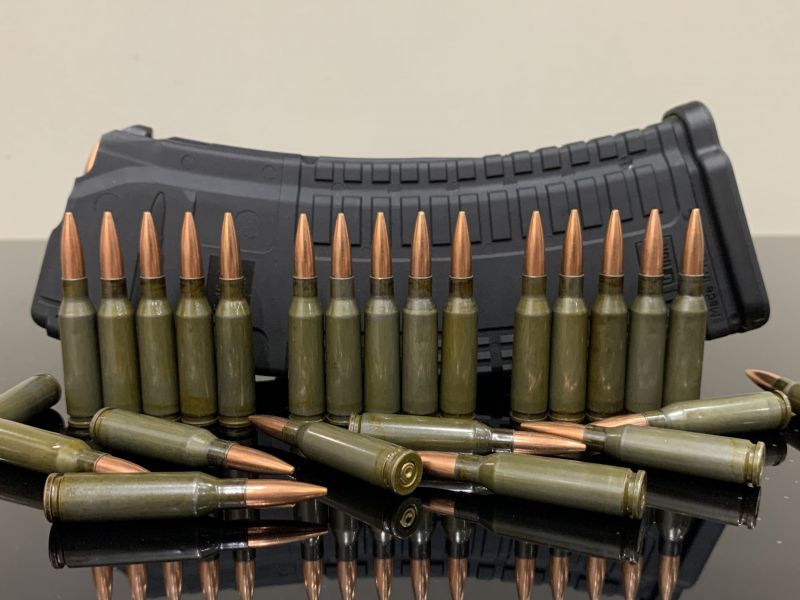 - 30 шт - Макетов патронов 5,45x39 в стальной гильзе в зеленом цвете (артикул 500M10288)
