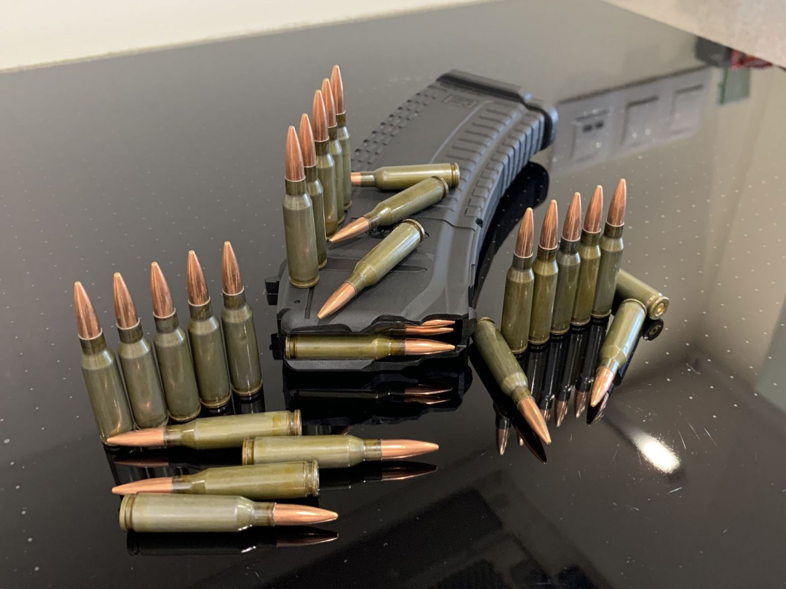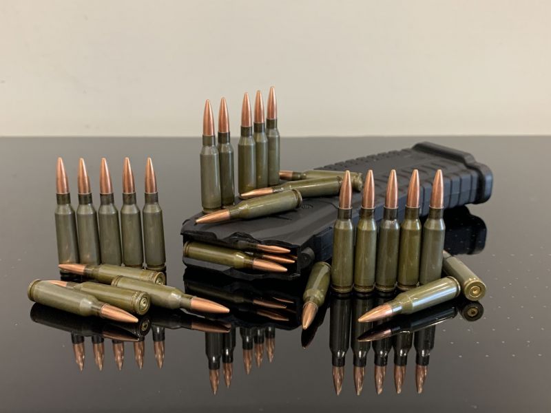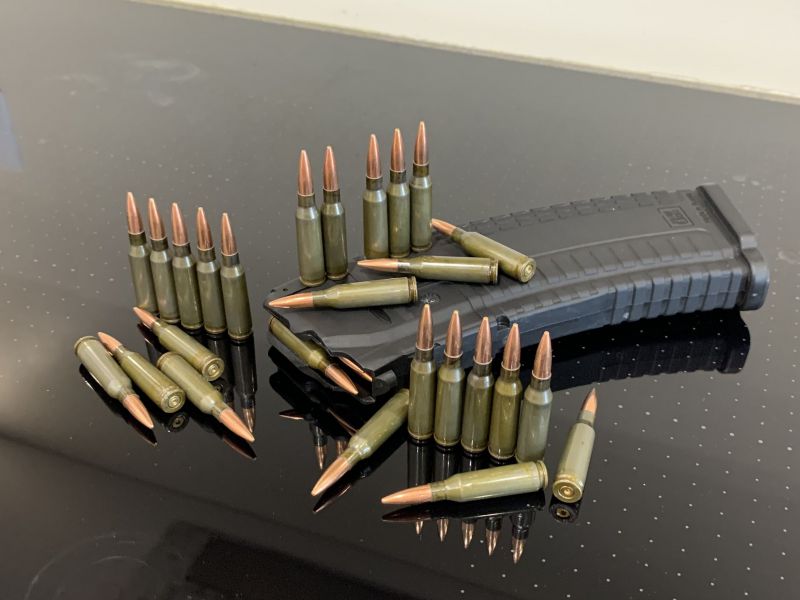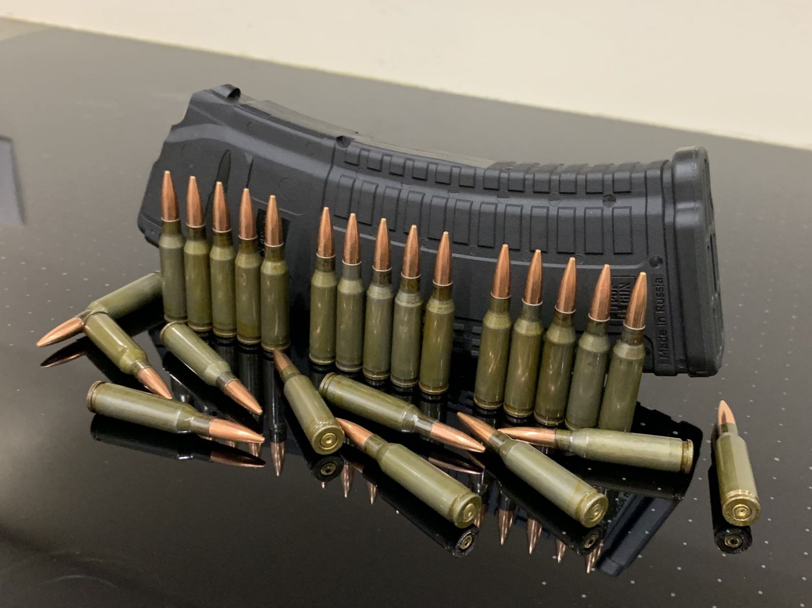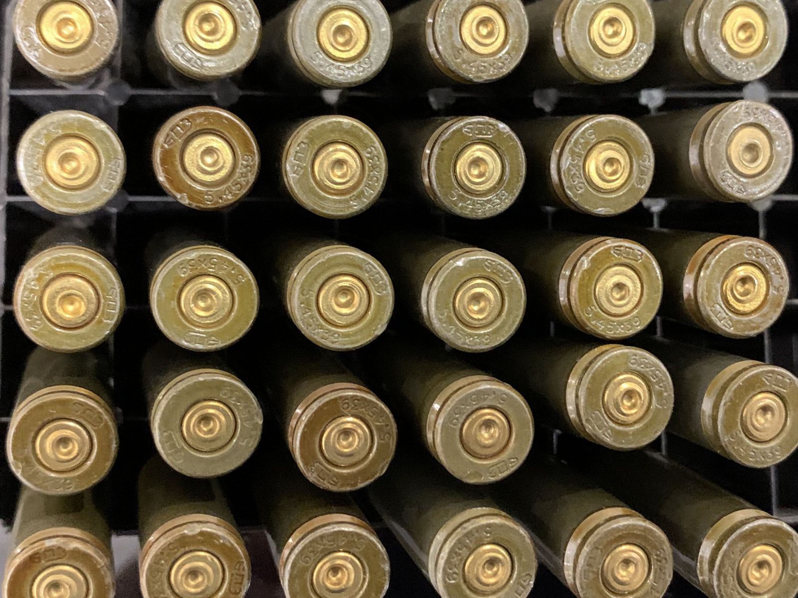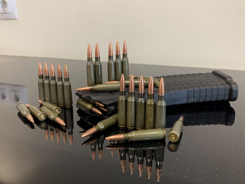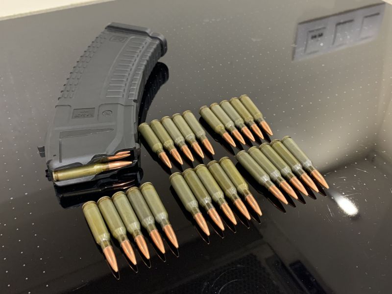 Макеты патронов 5.45х39 изготовлены из настоящих гильз и пуль, обжаты на прессе, пули не выпадают и не проваливаются при многократном использовании.