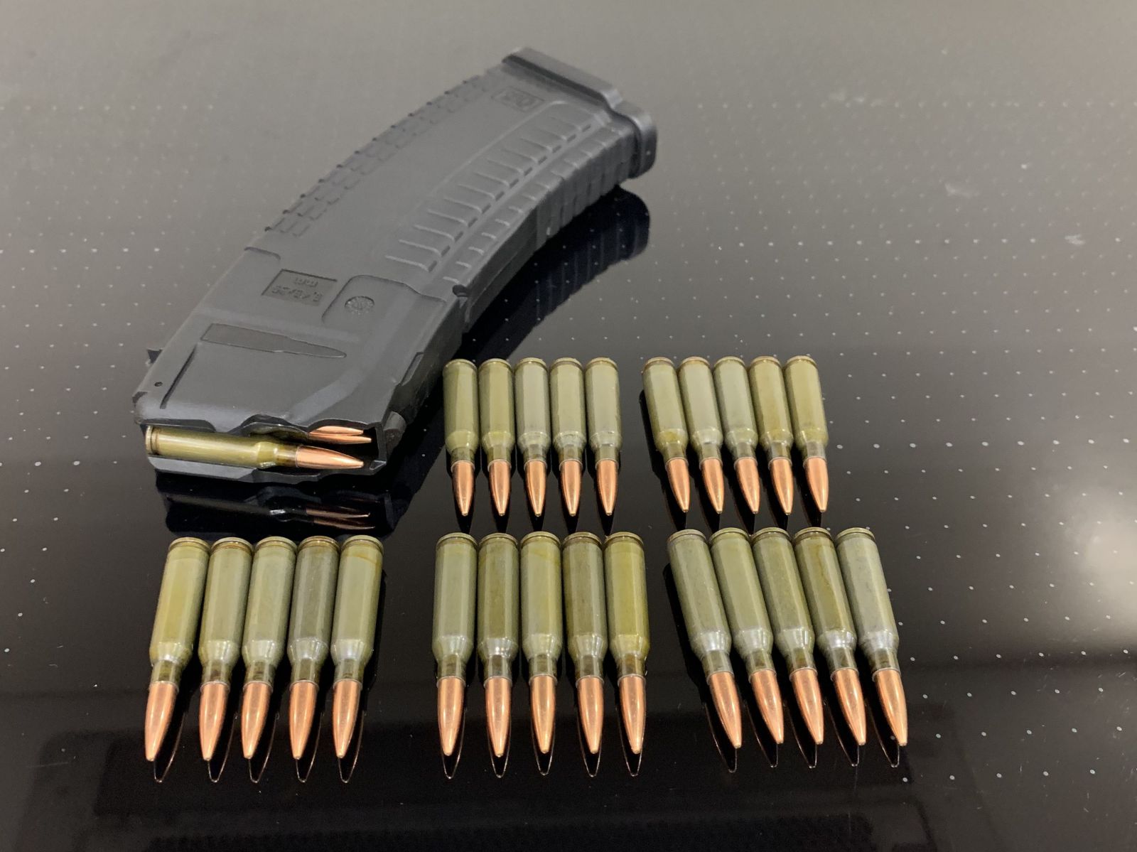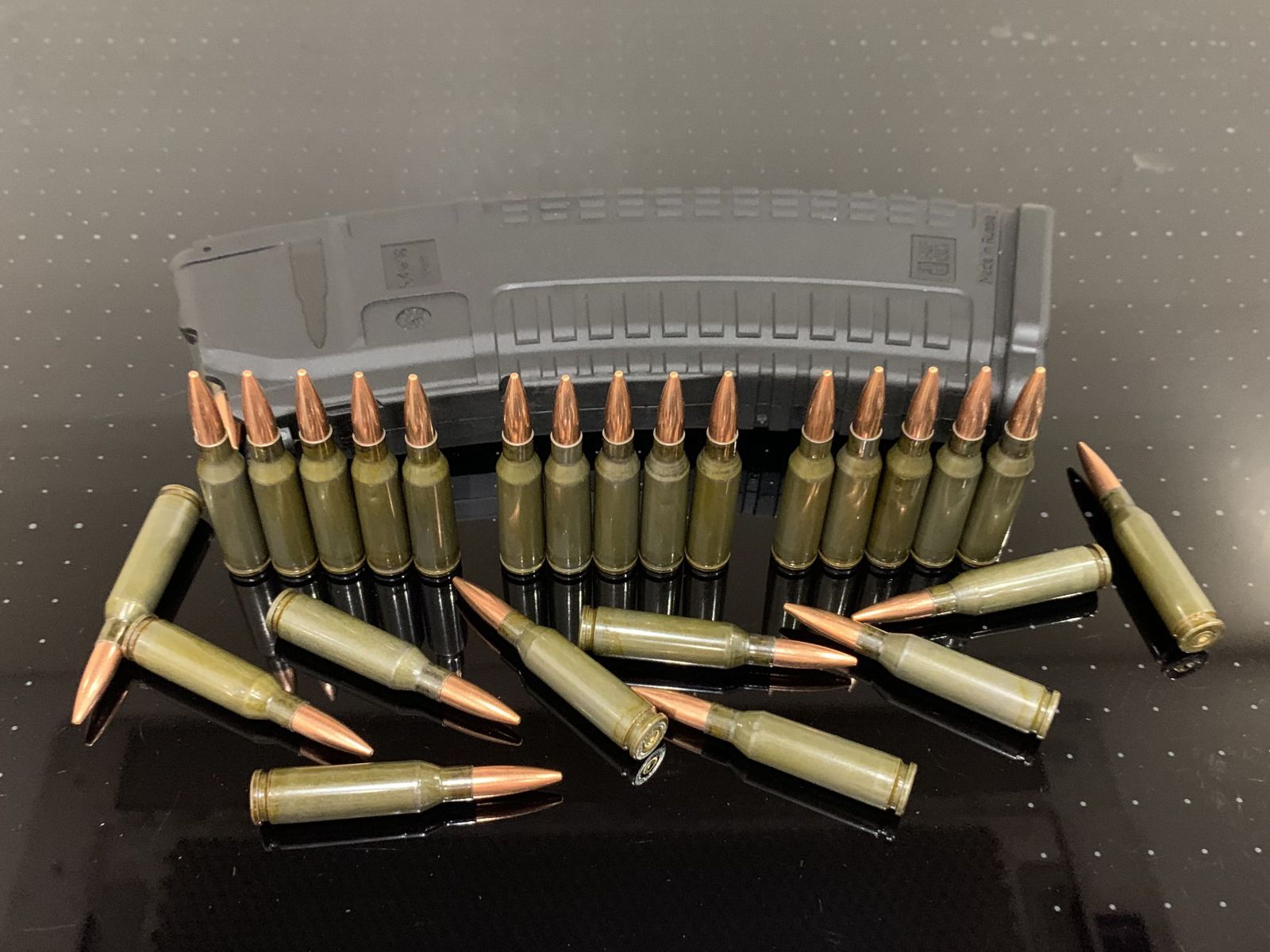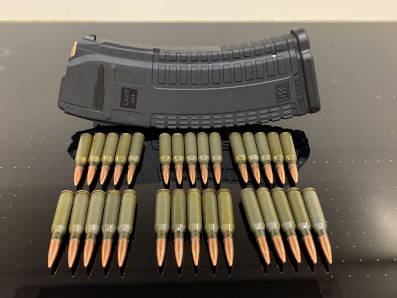 Учебно тренировочный комплект: Магазин АК + 30 патронов 5.45х39 зеленых