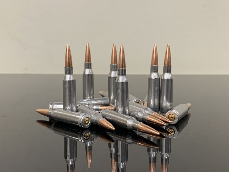 - Стальной и блестящий хорошо виден в смеси зеленых / серых боевых патронов и гильз