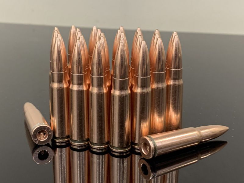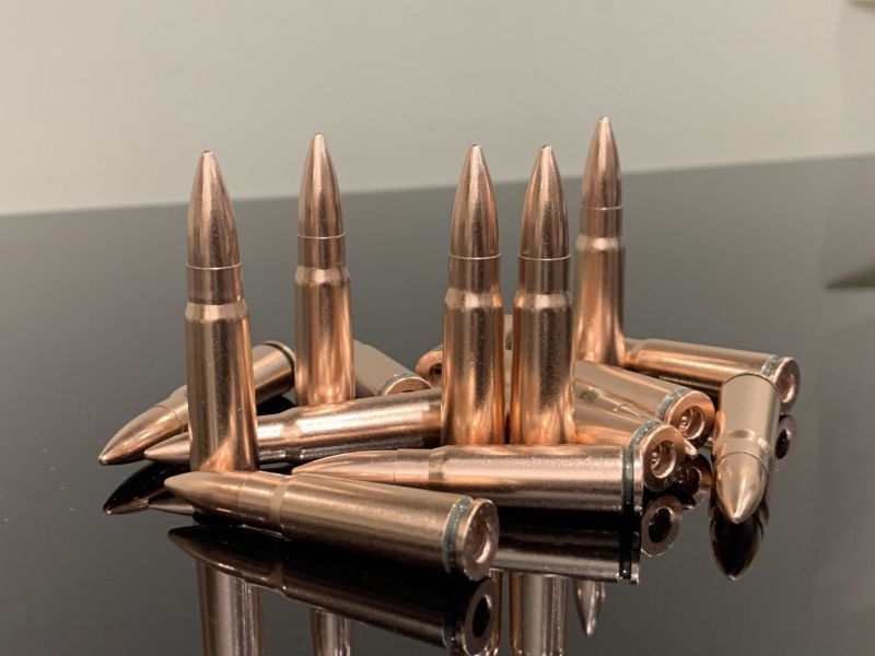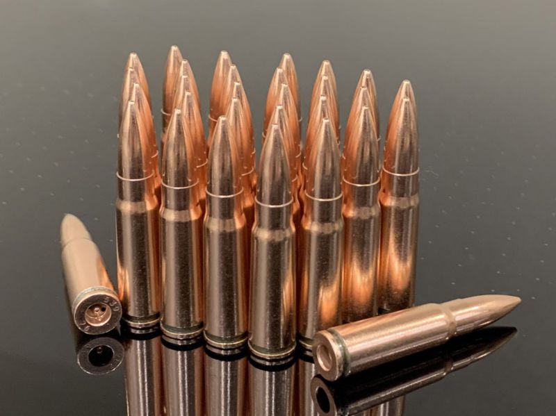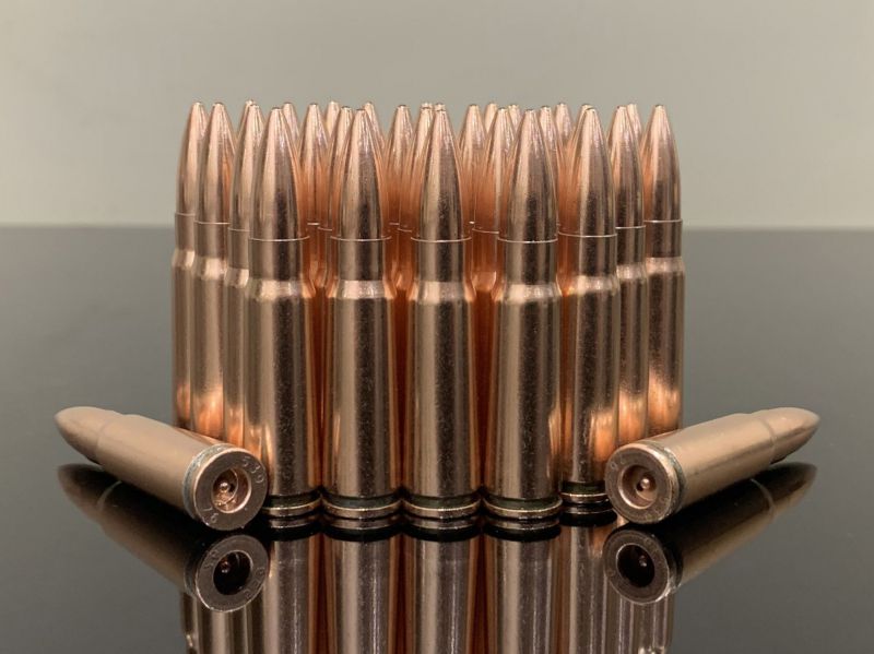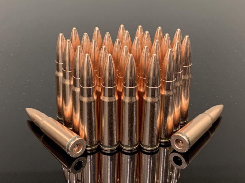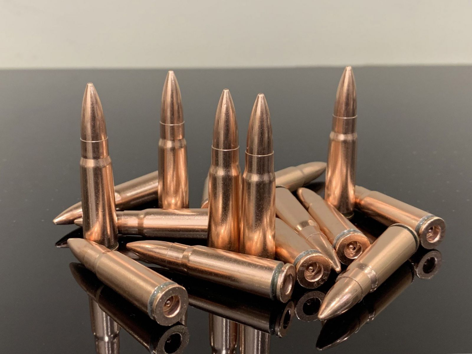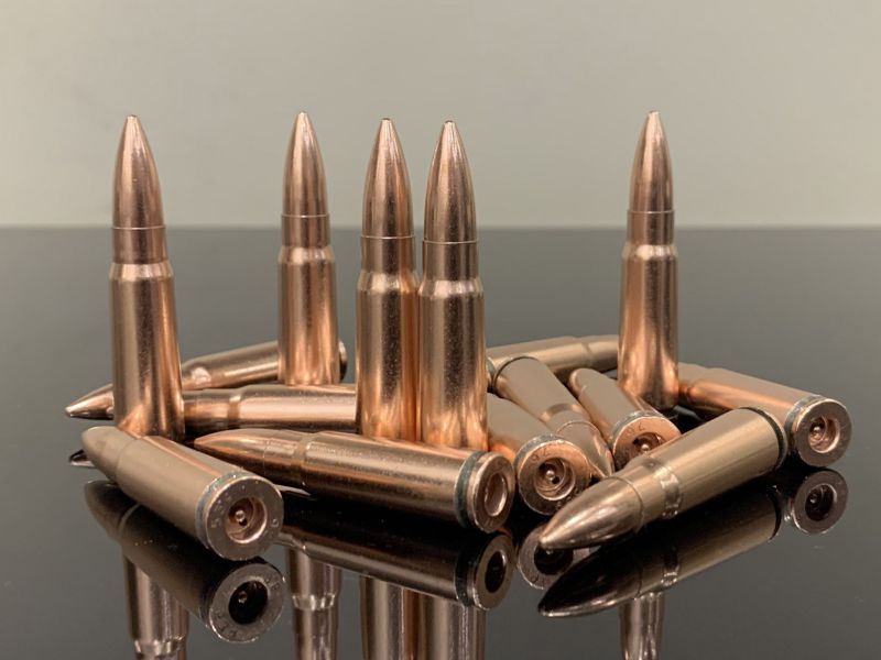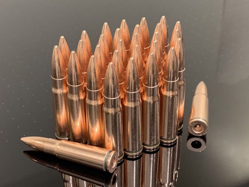 Комплект из 30 патронов 7.62х39 на Калашников, омедненные, без капсюля