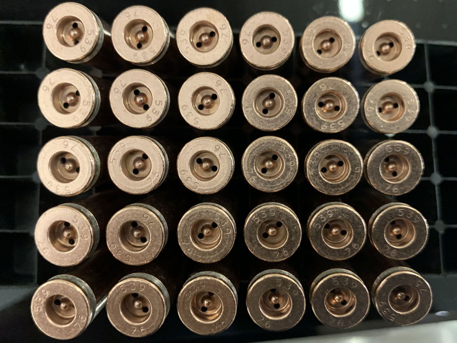 - 30 шт - Макетов патронов 7.62х39 в стальной гильзе с омедненным покрытием, БЕЗ КАПСЮЛЯ (артикул 500M10094)