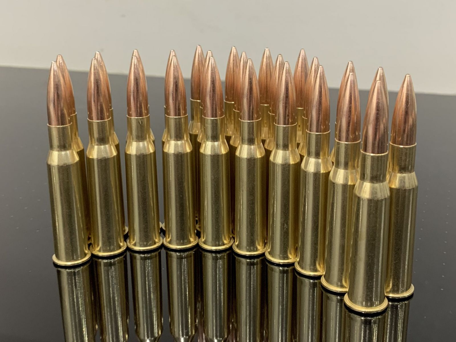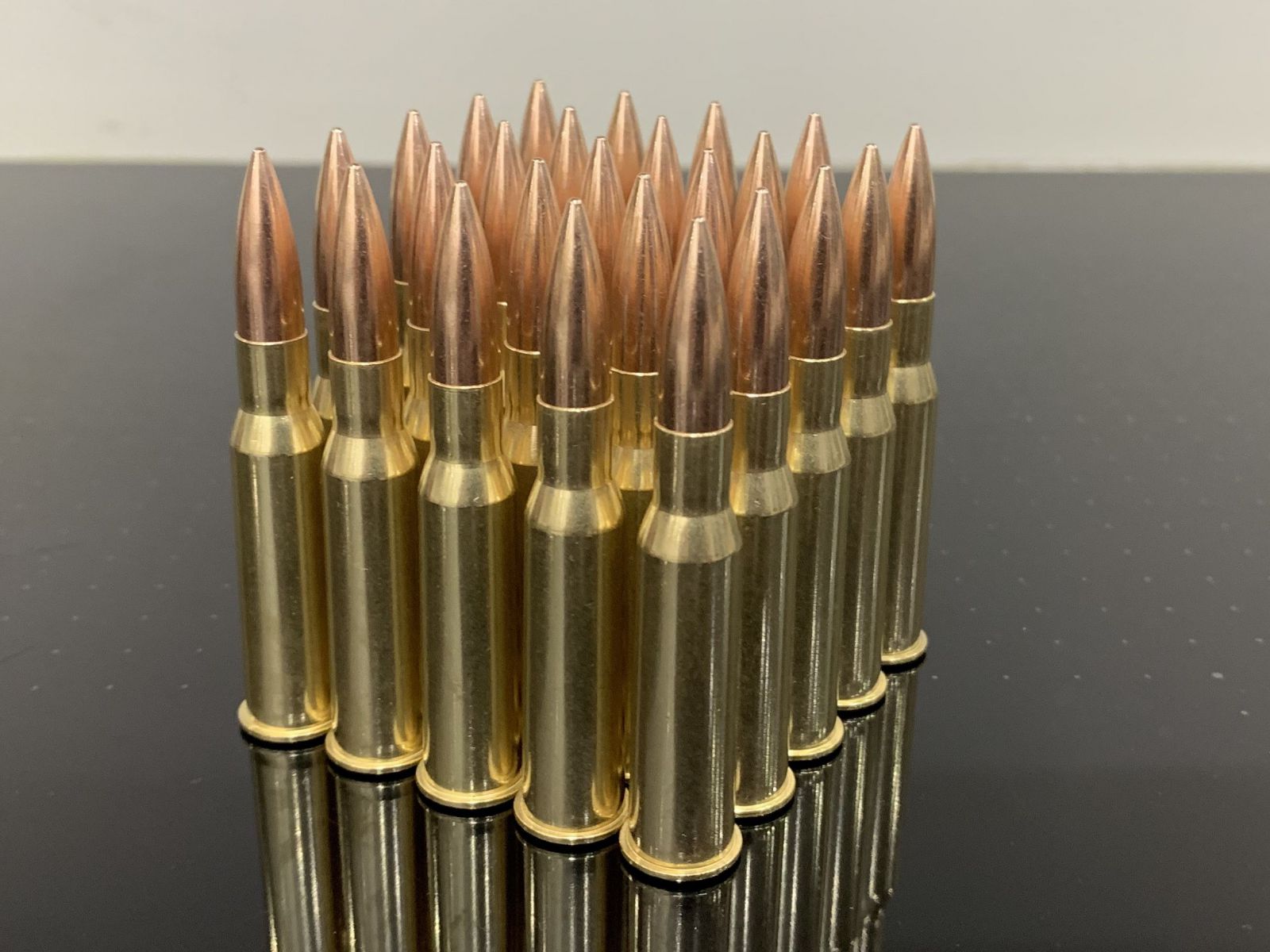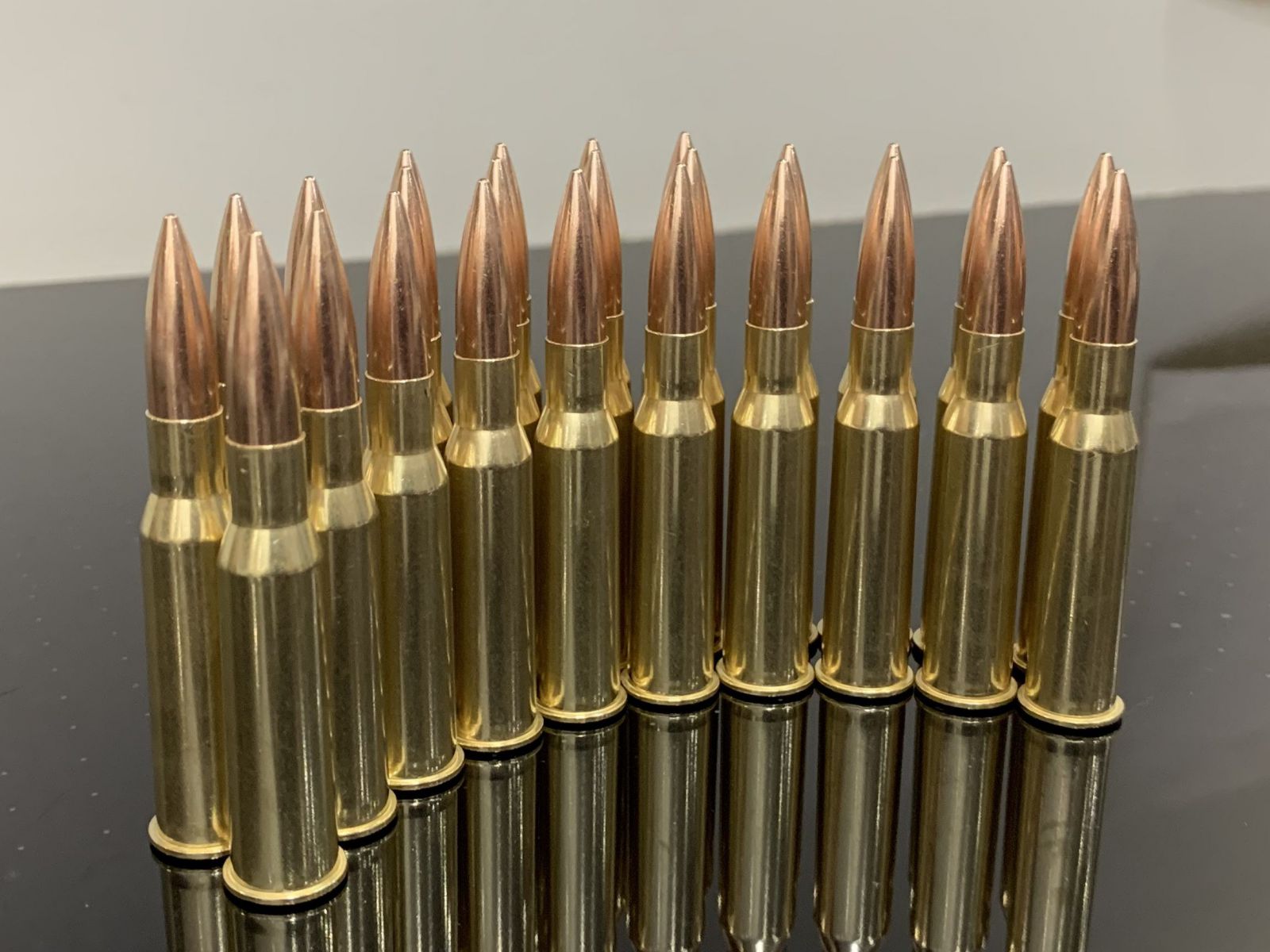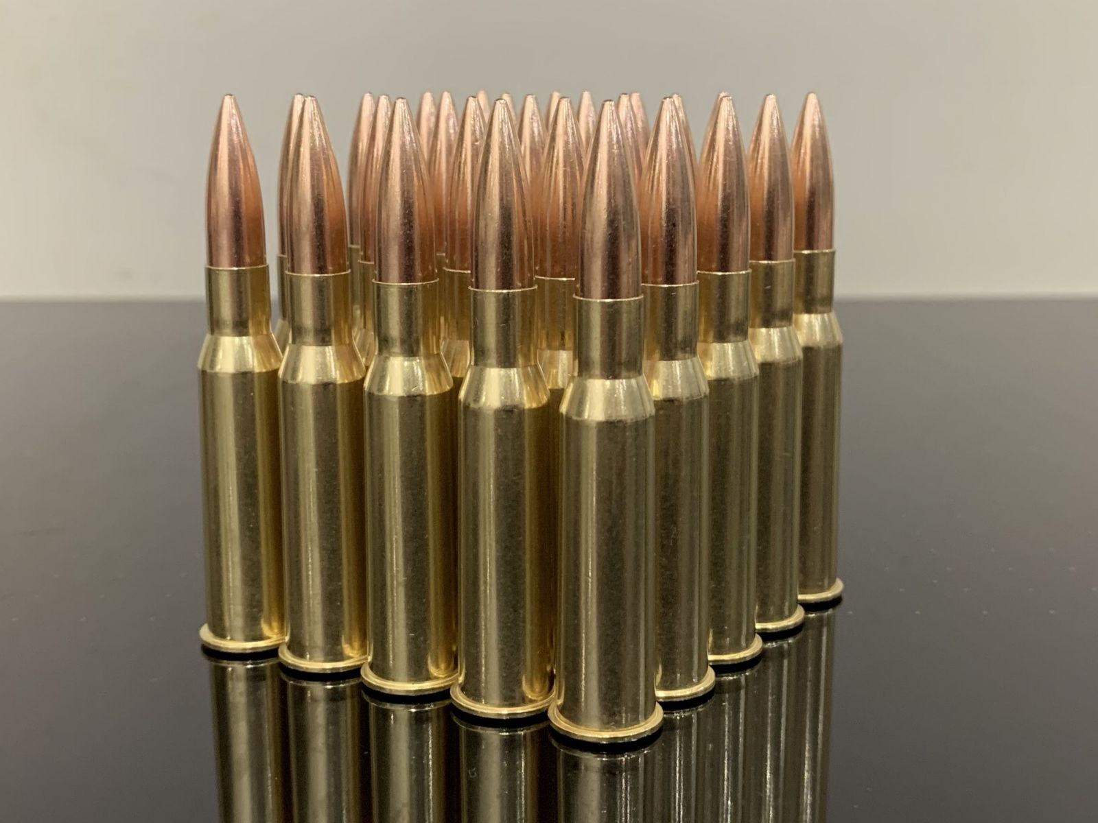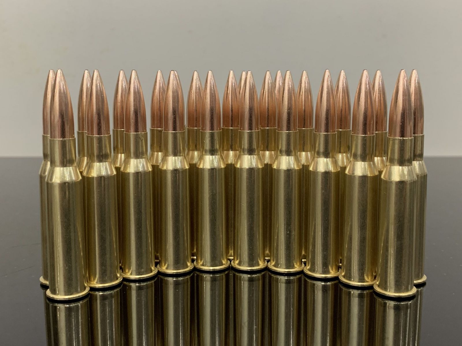 Сначала патрон выпускался пулей с закруглённой головкой, которая закреплялась в горлышке гильзы с помощью трёх упорных углублений. Патрон имел латунную бутылочную гильзу с выступающим фланцем.