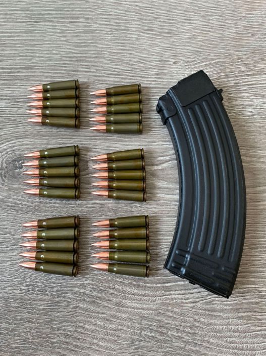 Комплект: Магазин АК / АКМ 7.62х39, ребристый + 30 патронов зеленых